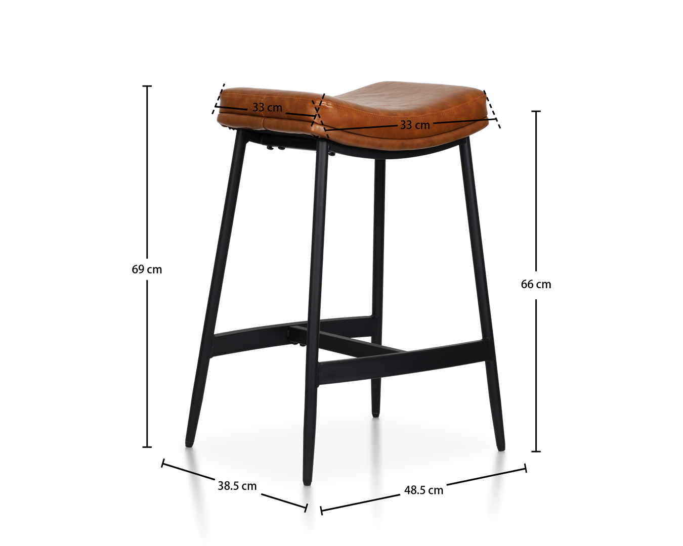 • Kudden är klädd i rika solbrun faux läder och är både mjuk och stödjande. En pulverbelagd svartmetallram ger kontrast och stabilitet, med ett bekvämt fotstöd för sittplatskomfort hela dagen.