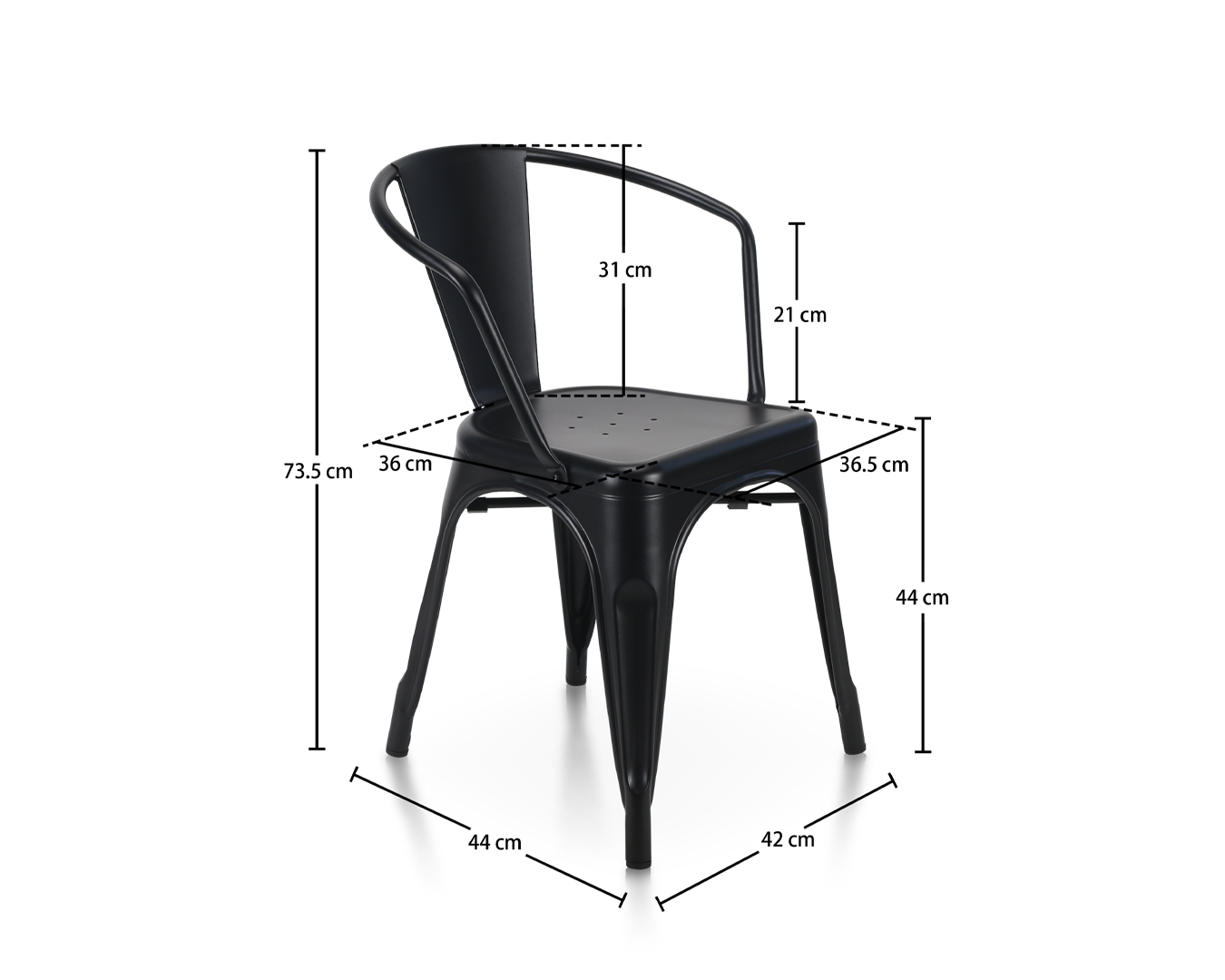 • Denna stol är ett mästerverk av industriell design, tillverkat från järn av hög kvalitet och är klar i en elegant svart färg som strålar elegans. Uppmärksamheten på detaljer i dess konstruktion är tydlig i alla aspekter, från den exakta svetsningen till ramens släta konturer.