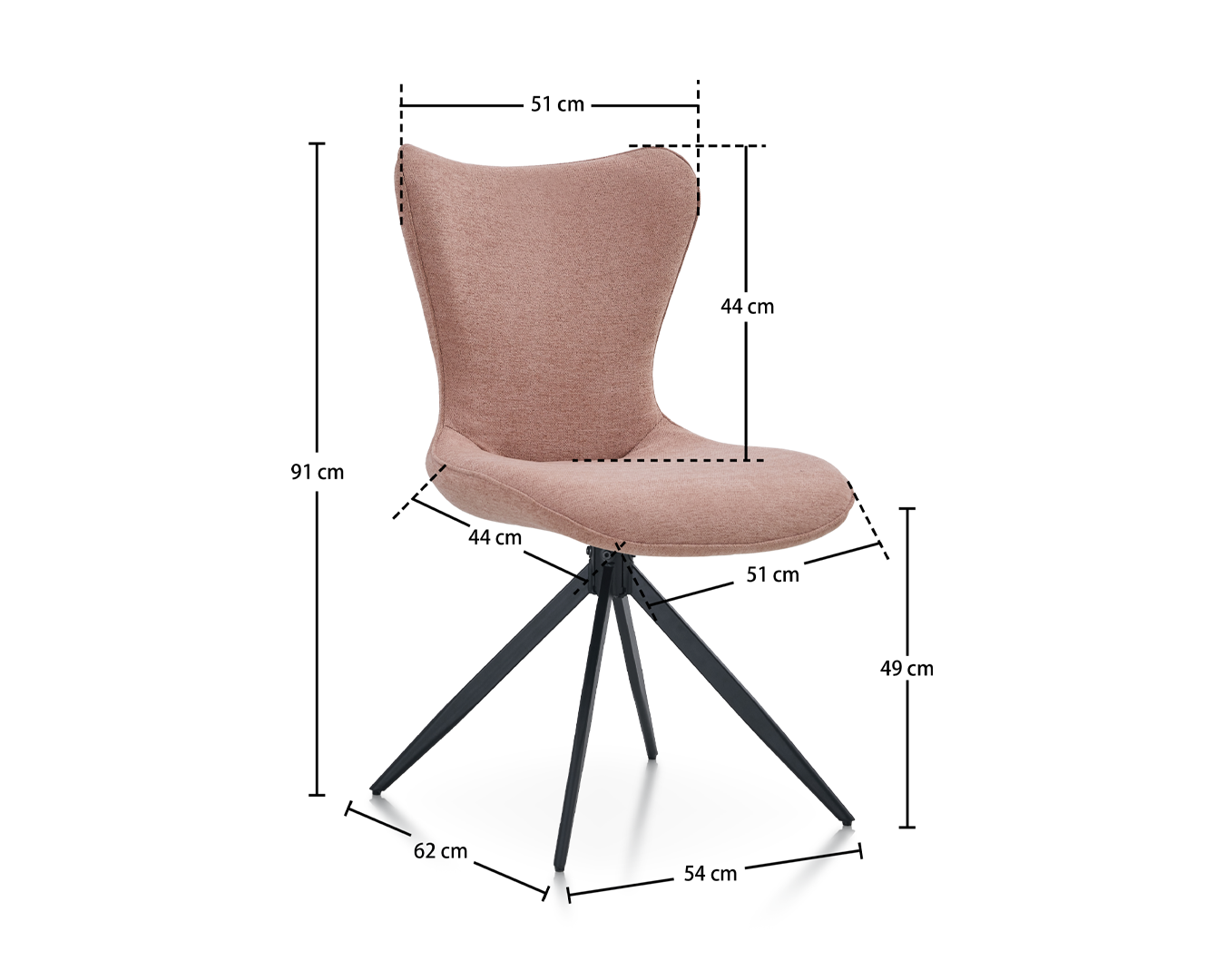 • Klädd i ett mjukt, rodnad rosa tyg erbjuder det en mysig sittupplevelse medan du lägger till en touch av sofistikering till alla matplatser. Stolens eleganta design kompletteras av sin robusta black metal -bas, som inte bara ger stabilitet utan också förbättrar dess samtida överklagande.