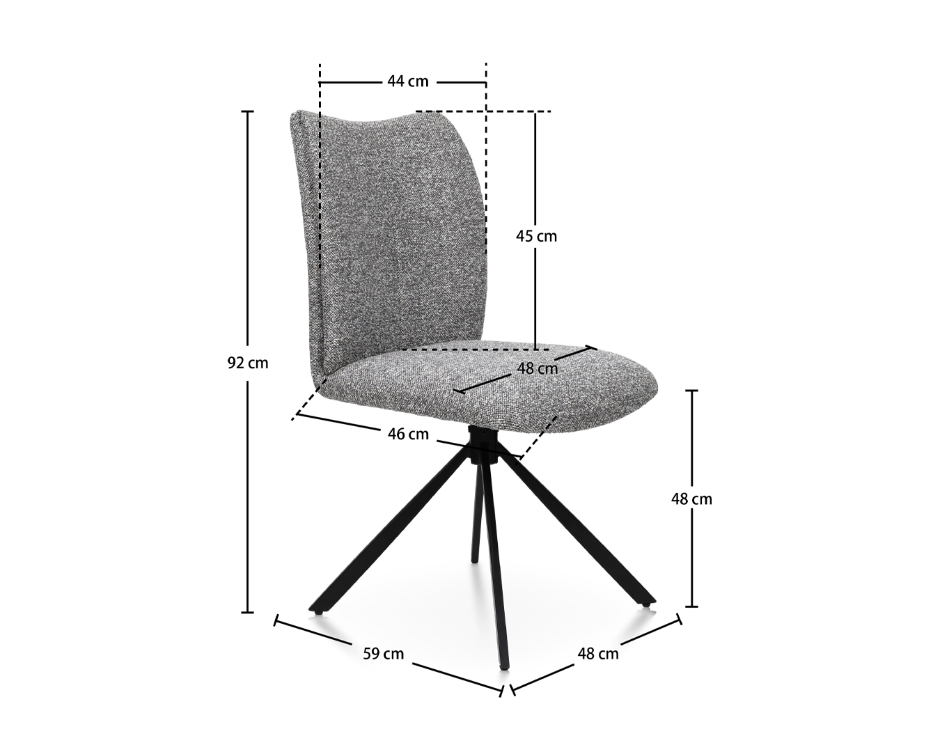 • Denna stol är designad med eleganta linjer och sofistikerat tyg och ger en uppfriskande, minimalistisk touch till alla matplatser. Swivel -funktionen lägger till mångsidighet och lätthet, vilket möjliggör smidig rörelse medan du njuter av måltider eller samtal.