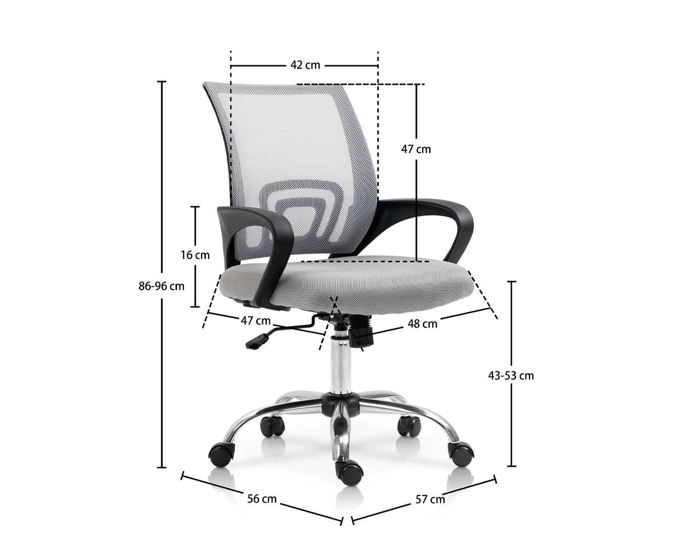 -Storlek: W57*D56*H86-96 CM / SH: 43-53 cm