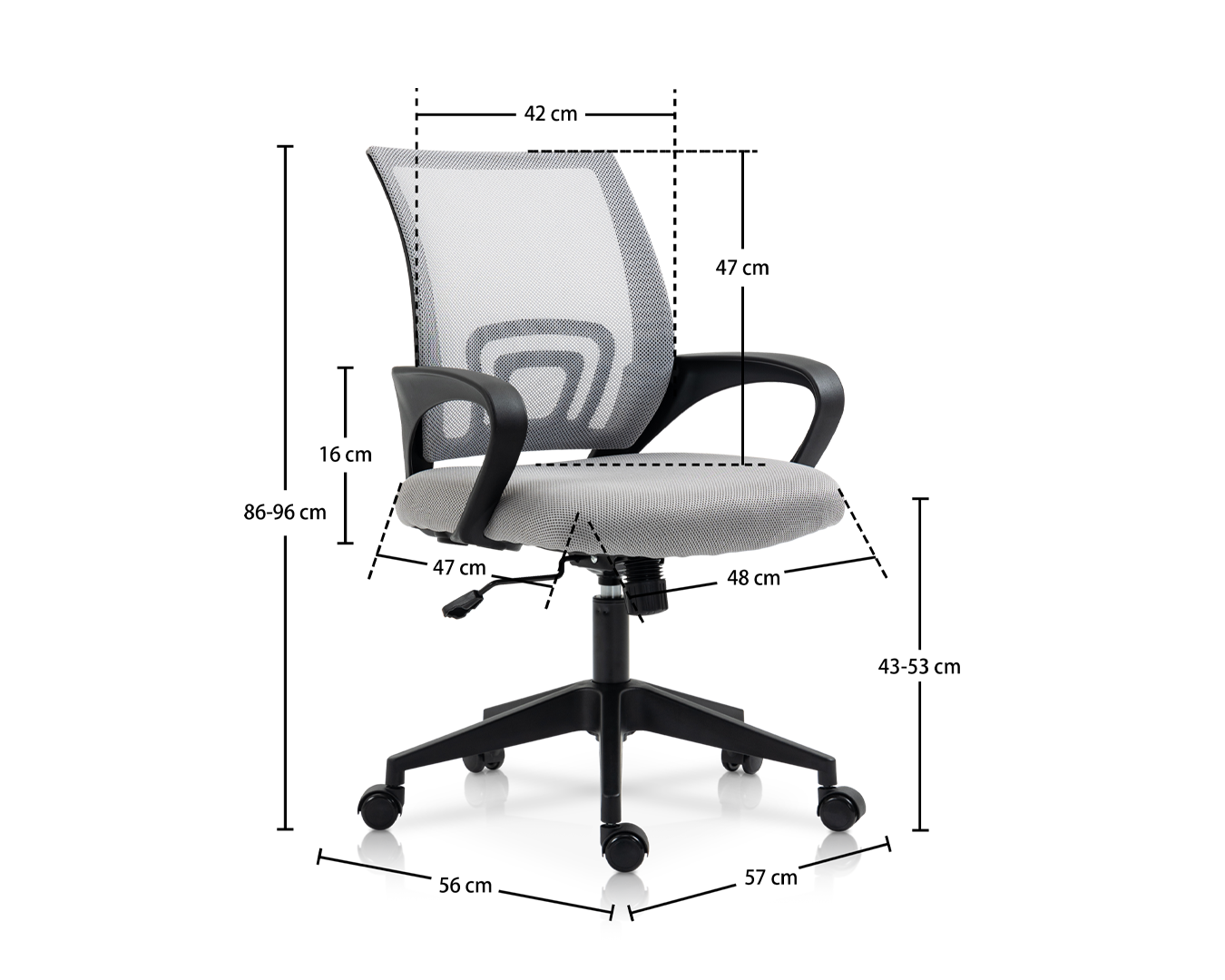 • Grey Mesh Office -stolen är den perfekta balansen mellan komfort och stil. Med en modern och klassisk grå nät som möjliggör andningsförmåga kan du hålla dig sval även under de mest trafikerade arbetsdagarna.