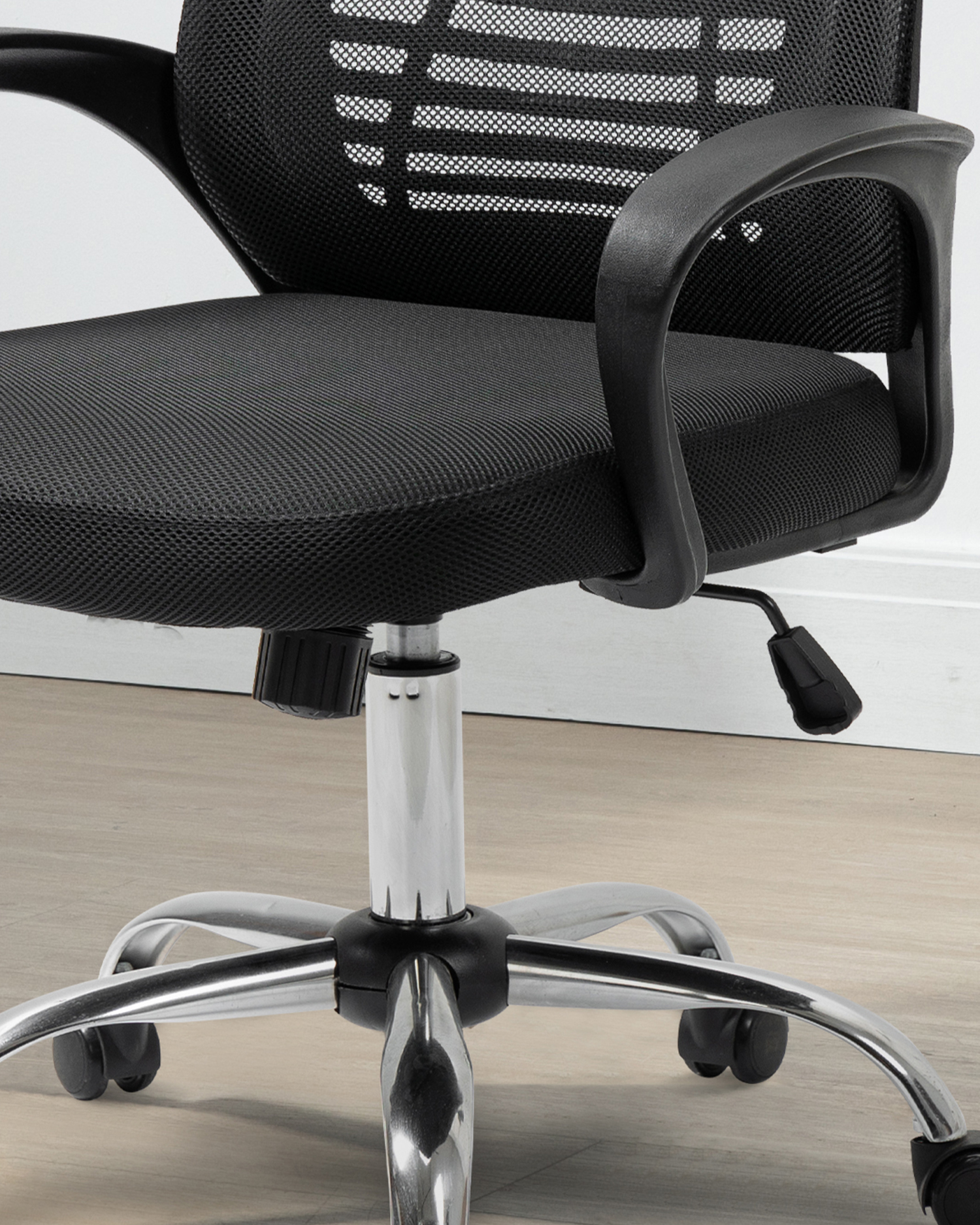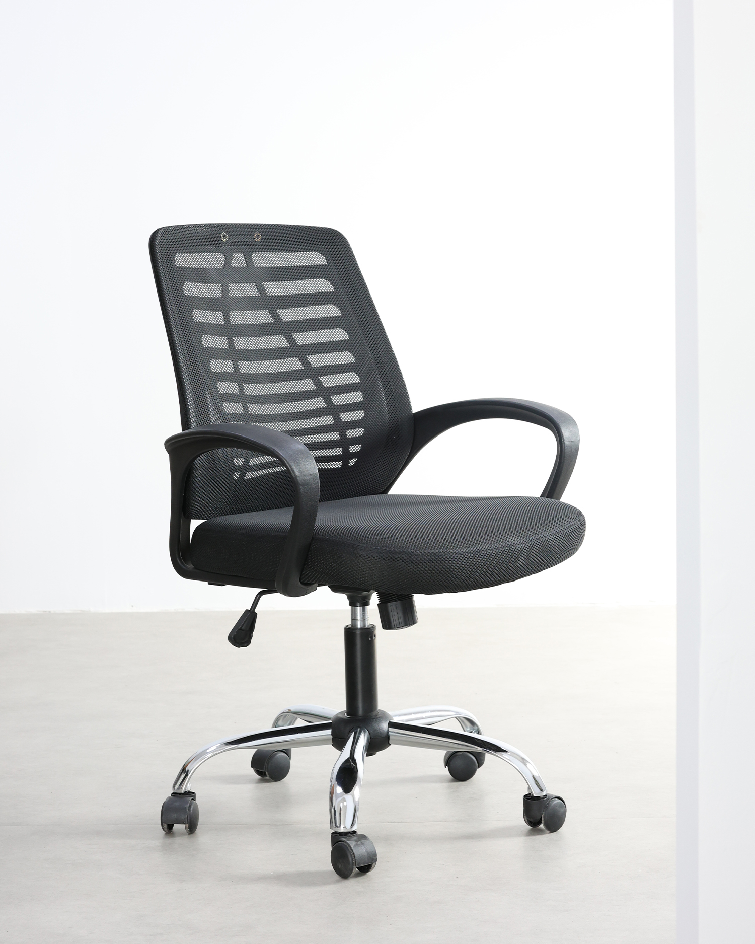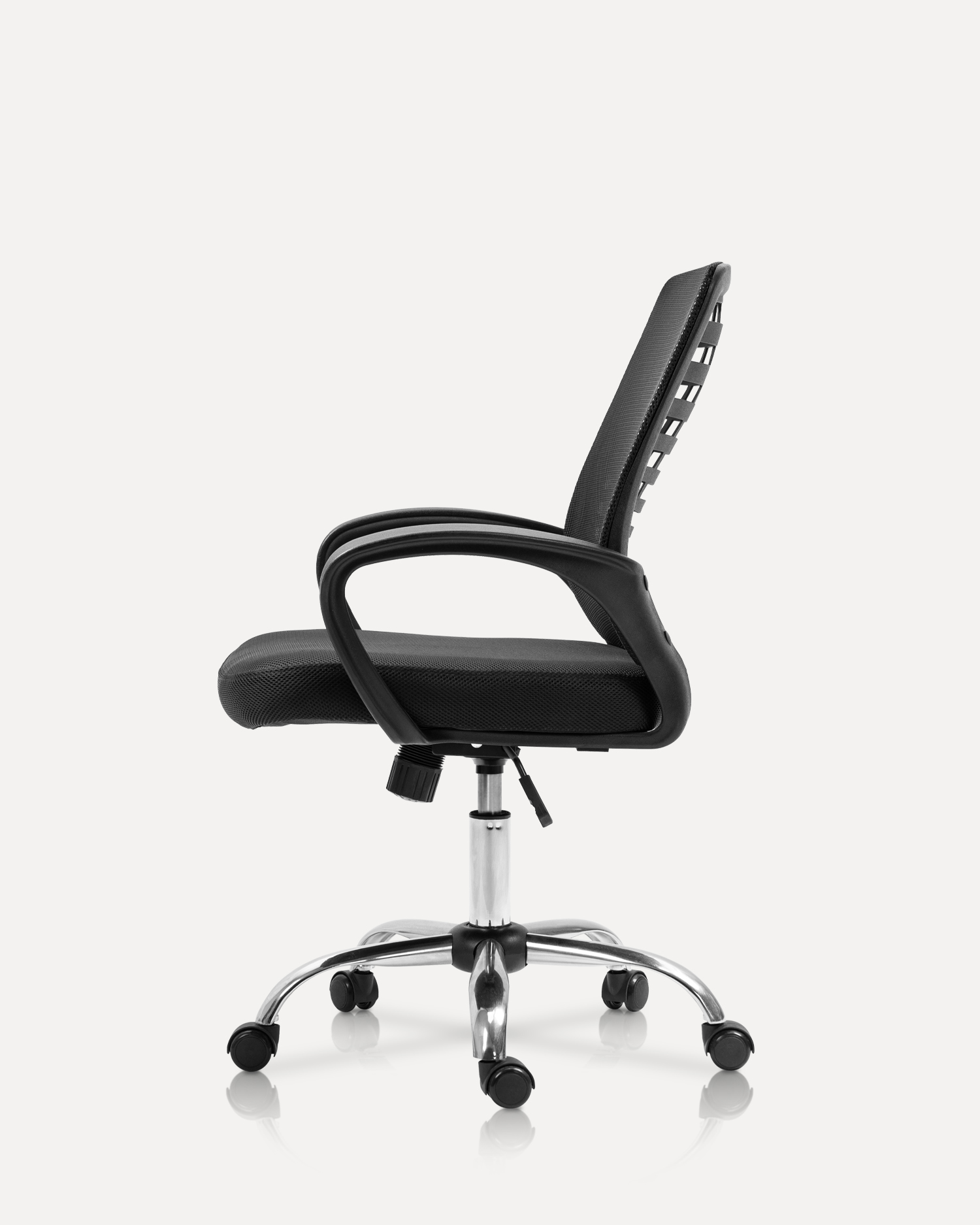 • T Han kromade metallbasen lägger till en touch av djärvhet och modernitet till alla kontorslokaler, vilket gör att denna stol inte bara är funktionell utan ett uttalande.