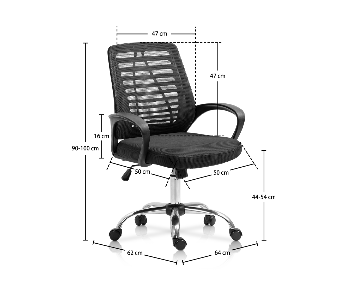 -Storlek: W64*D62*H90-100 cm / SH: 44-54 cm