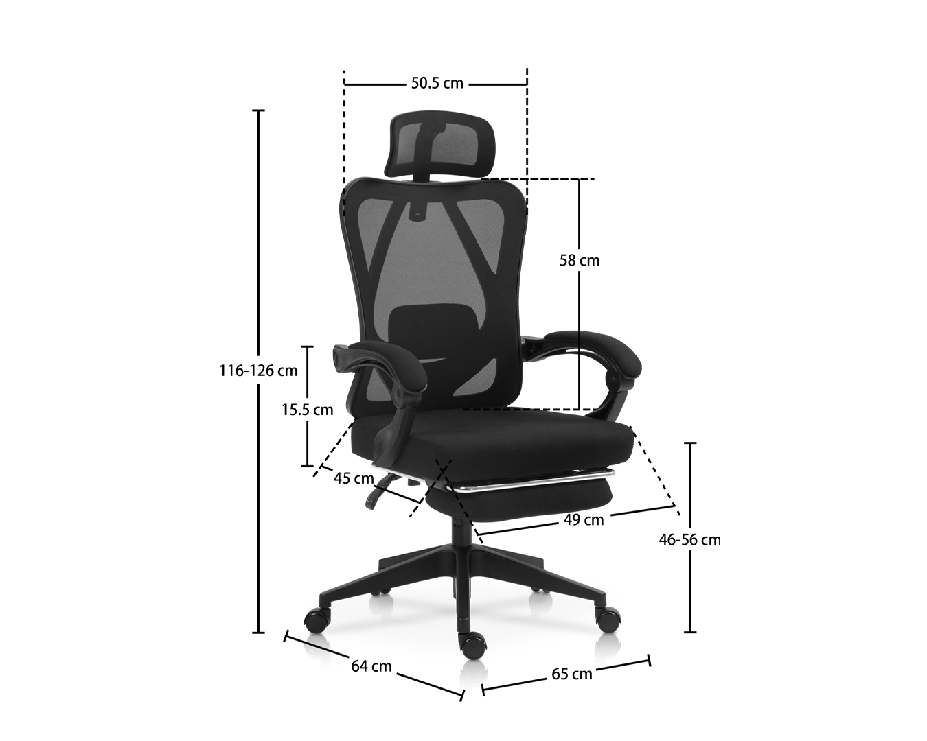 -Storlek: W65*D64*H116-126 CM / SH: 46-56 cm