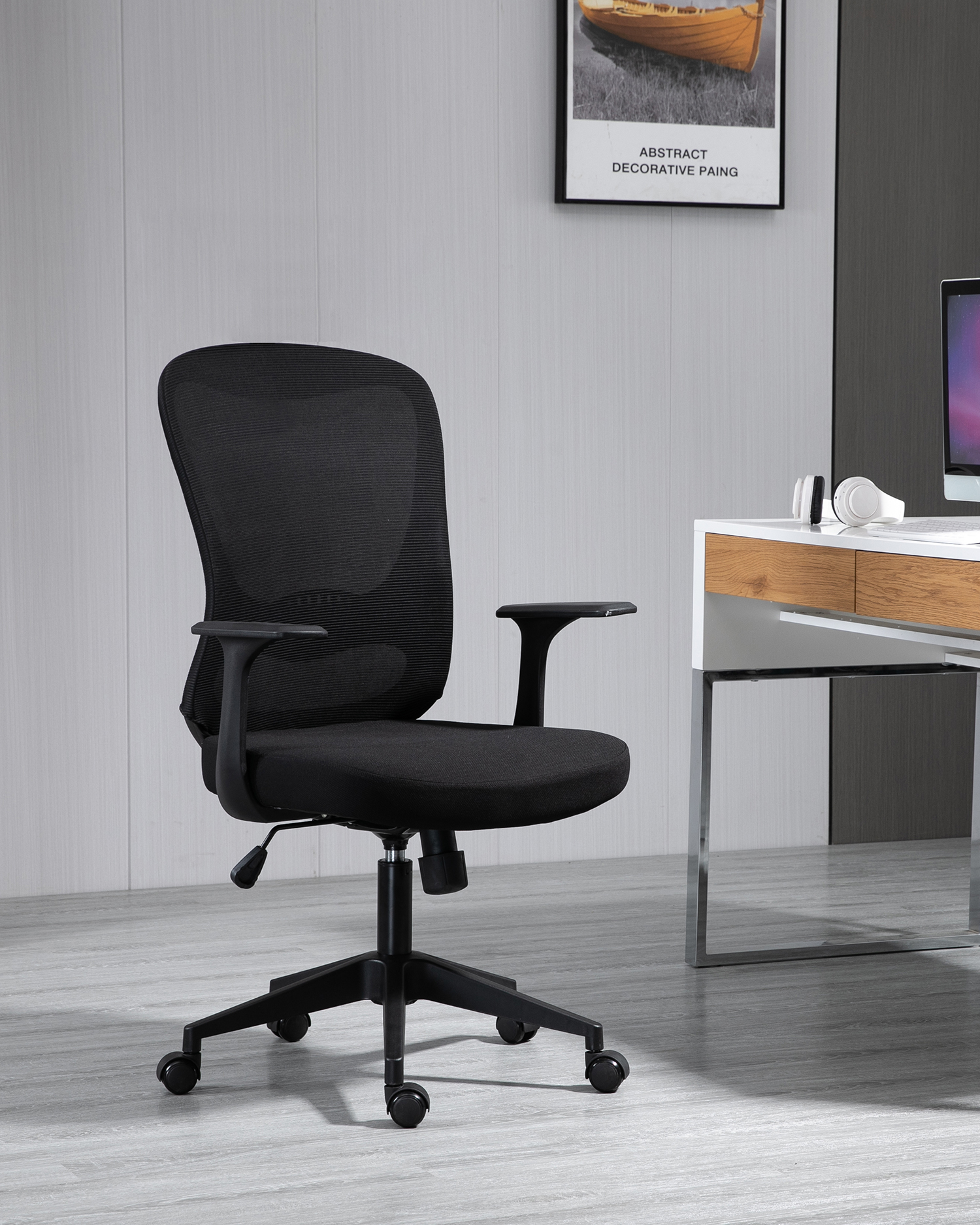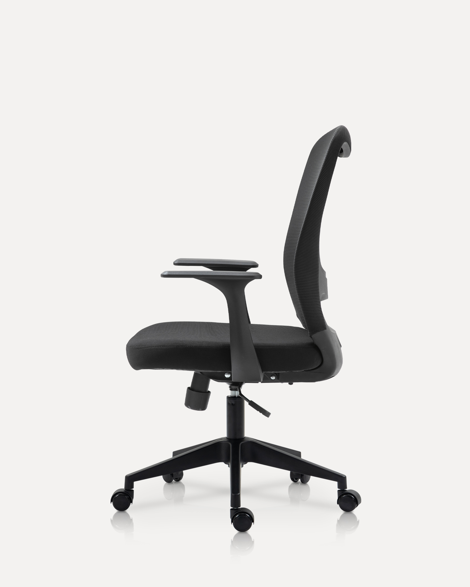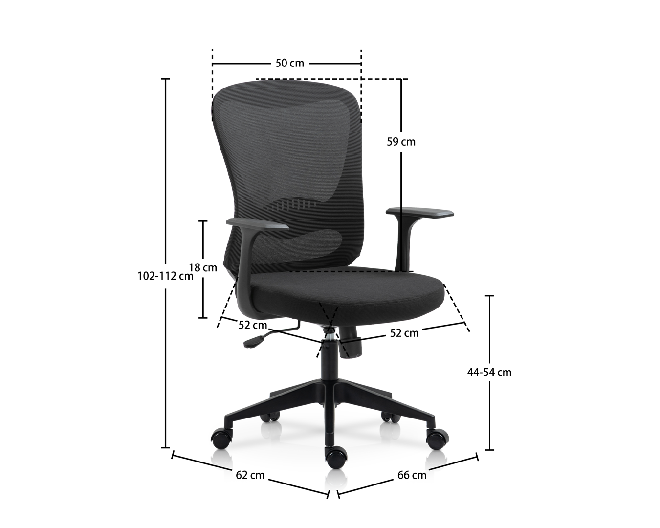 • Ergonomi är kärnan i denna stolens design. Den justerbara höjdmekanismen gör att du kan anpassa stolen så att du passar dina specifika behov, vilket säkerställer att dina fötter är platta på marken och knäna är i en 90-graders vinkel. Armstödet kan justeras för att ge ett perfekt stöd för dina armar, vilket minskar belastningen på axlarna och nacken. Luftstödet inbyggt i ryggstödet främjar korrekt hållning, vilket förbättrar den totala komforten och produktiviteten.