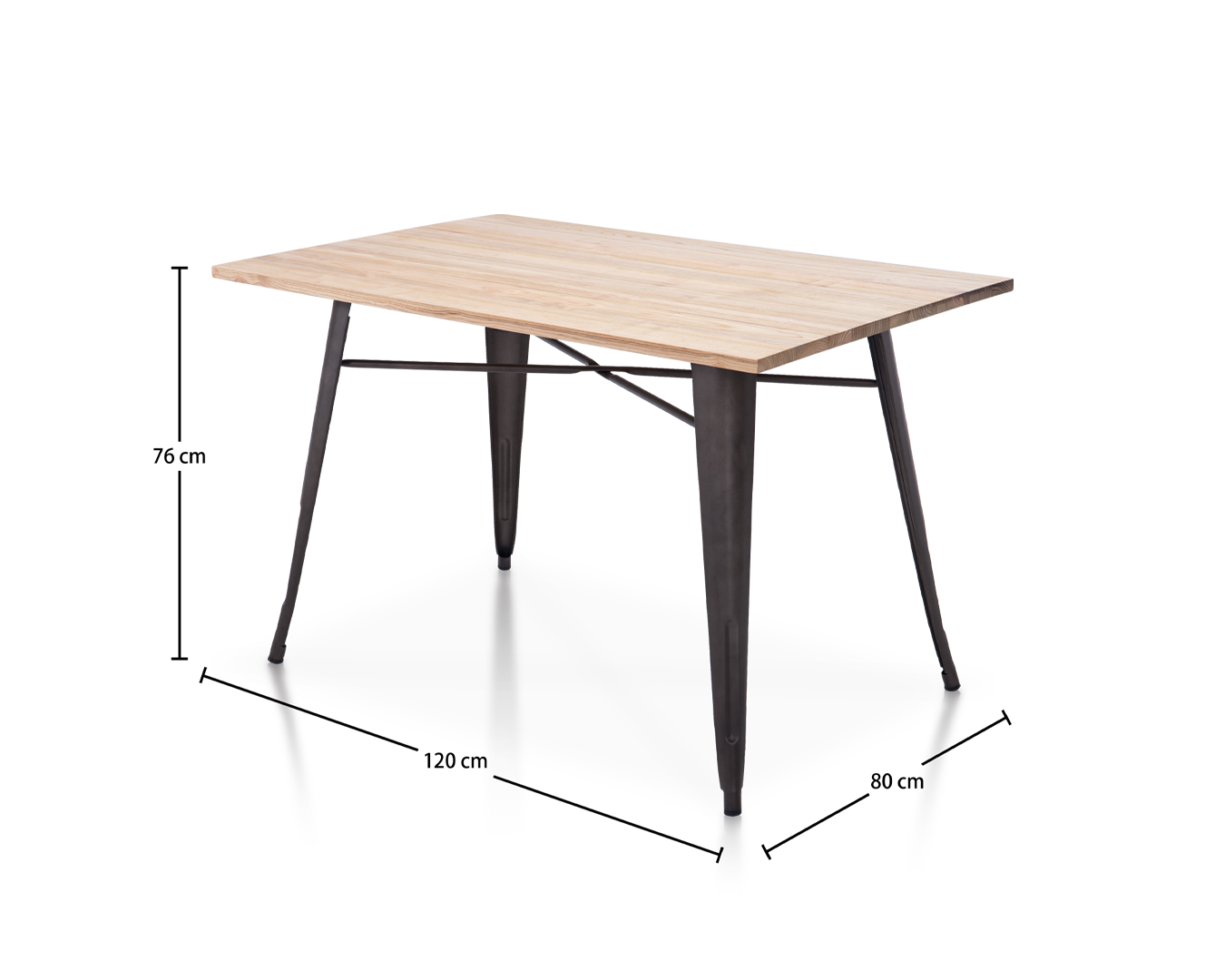 • Tabletten är tillverkad av premium elm trä, känd för sin hållbarhet och rika struktur. Den polerade finishen belyser träets naturliga skönhet och lägger till en känsla av värme och karaktär till alla rum. Kompletterar trätoppen är robusta järnben, färdiga i en matt svart färg som ger en modern och industriell touch. Denna unika blandning av material säkerställer att tabellen tål daglig användning samtidigt som det bibehåller sitt snygga utseende.