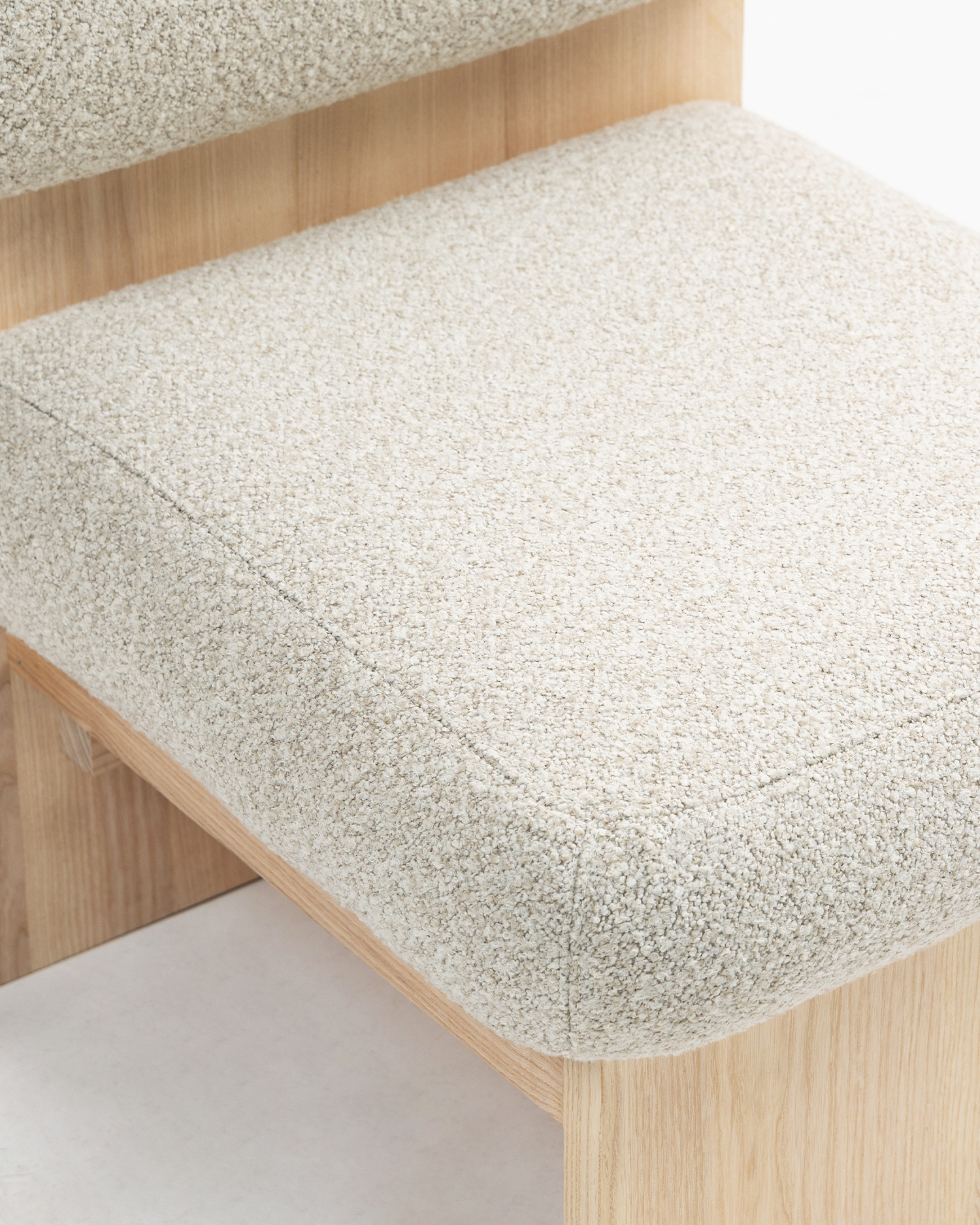 • Denna stol är designad med komfort i sin kärna och har en generöst dämpad säte och ryggstöd och omsluter dig i mjukhet och stöd. Asktrådramen, känd för sin hållbarhet och skönhet, ger en robust grund samtidigt som man upprätthåller ett elegant och modernt utseende. Det cylindriska ryggstödet ger en unik touch som erbjuder ergonomiskt stöd som anpassar sig perfekt till kroppens konturer.