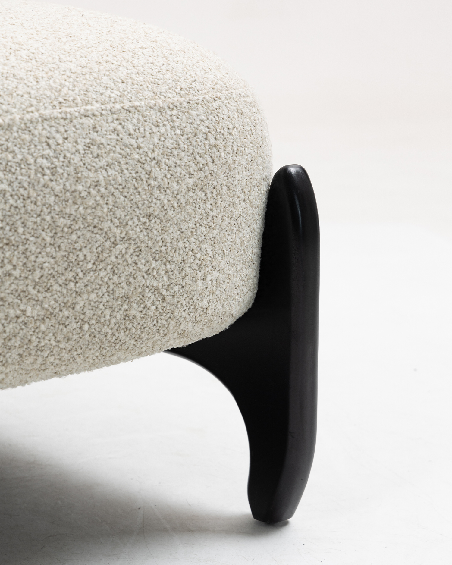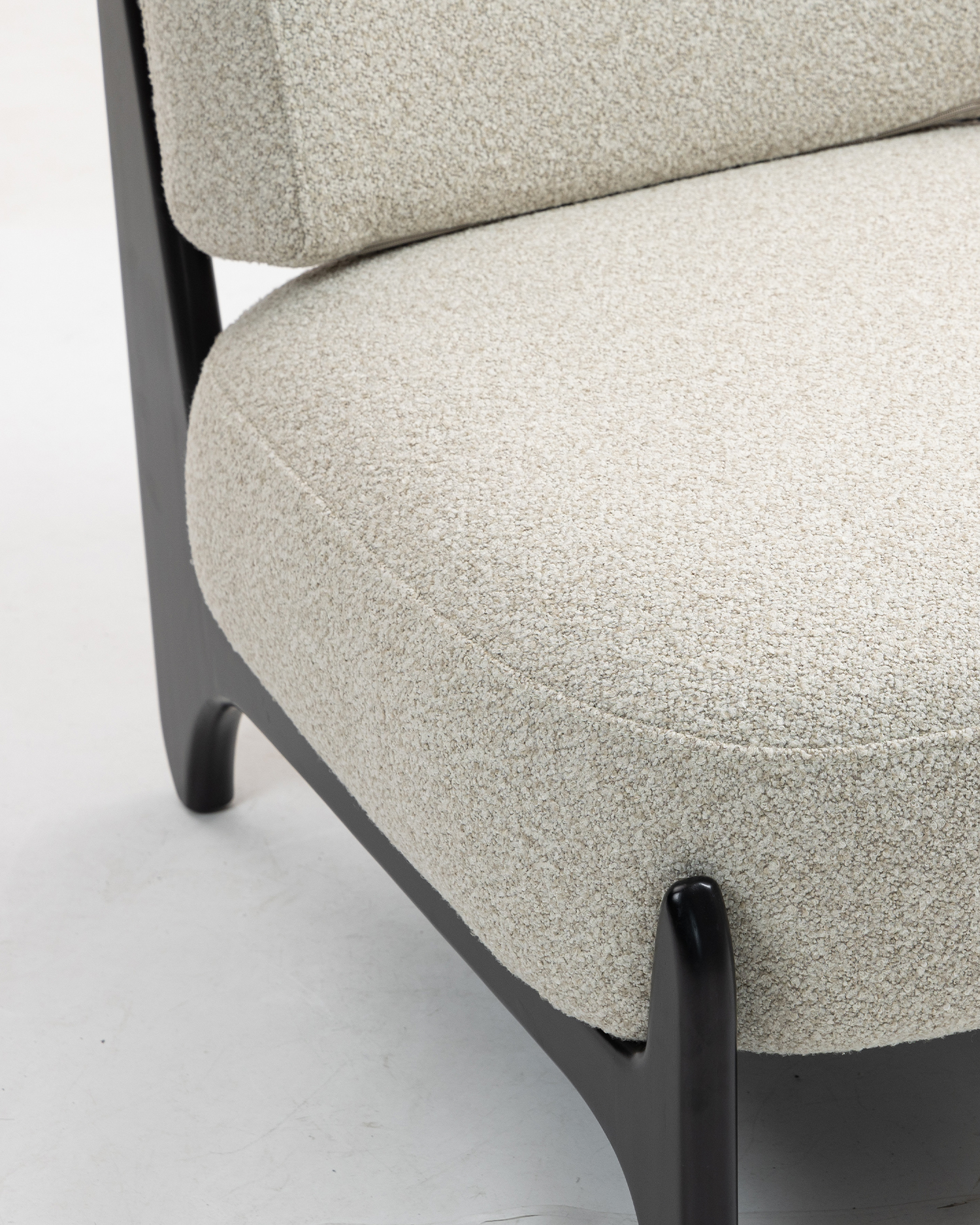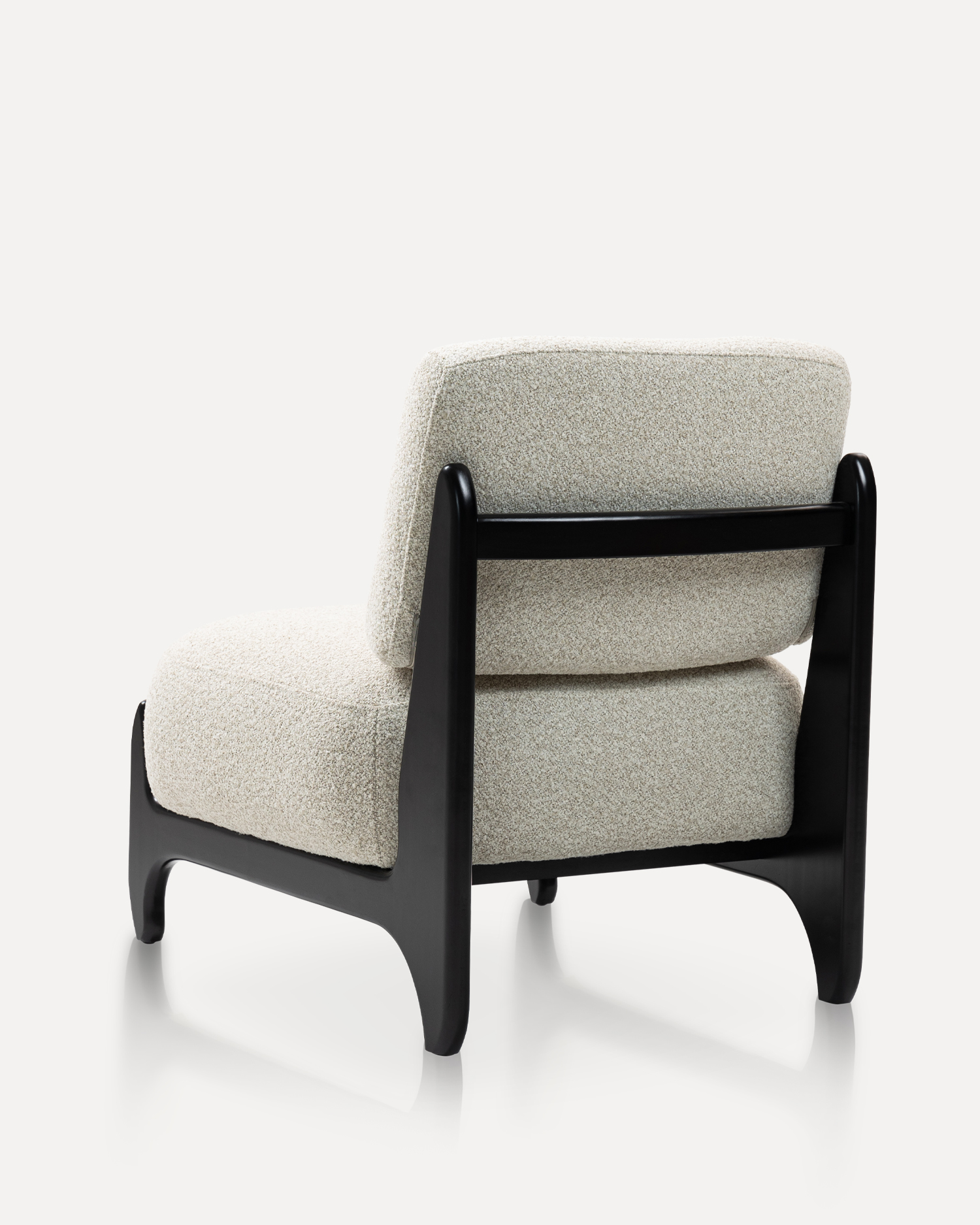 • Stolens ram, gjord av premiumgummiträ, har en smidig svart finish som utstrålar sofistikering och hållbarhet. Det generöst dämpade sätet och ryggstödet är klädda i ett mjukt, strukturerat tyg som ger oöverträffad komfort och stöd. Det unika böjda ryggstödet och armstödet erbjuder en snygg men funktionell design, så att du kan luta dig tillbaka och koppla av i ultimat komfort.