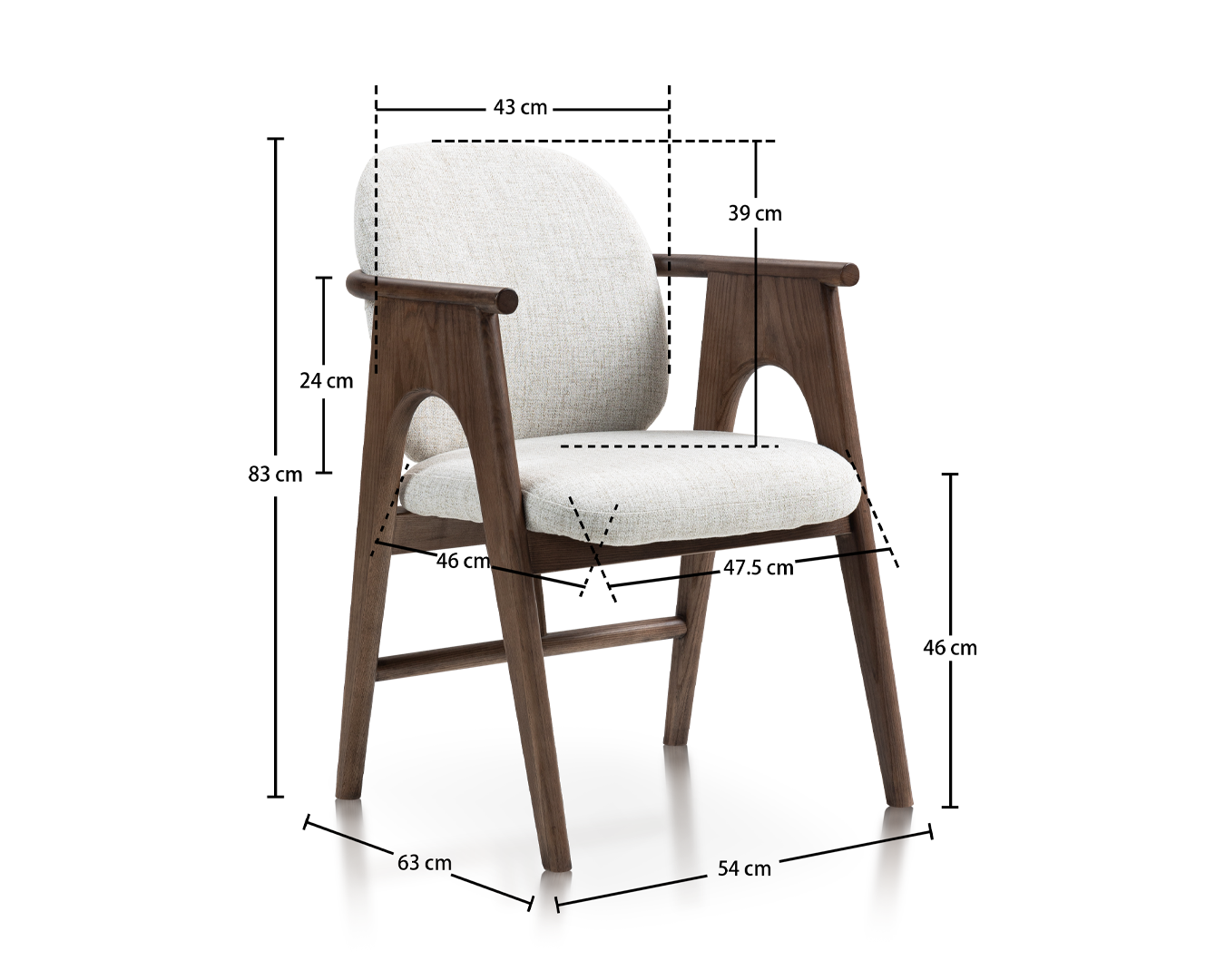 • Stolen är utformad från högkvalitativ askved och har en rik, varm finish som accentuerar materialets naturliga skönhet. De unika böjda armstöden lägger till både stil och funktionalitet, så att du kan luta dig tillbaka och koppla av i ultimat komfort.