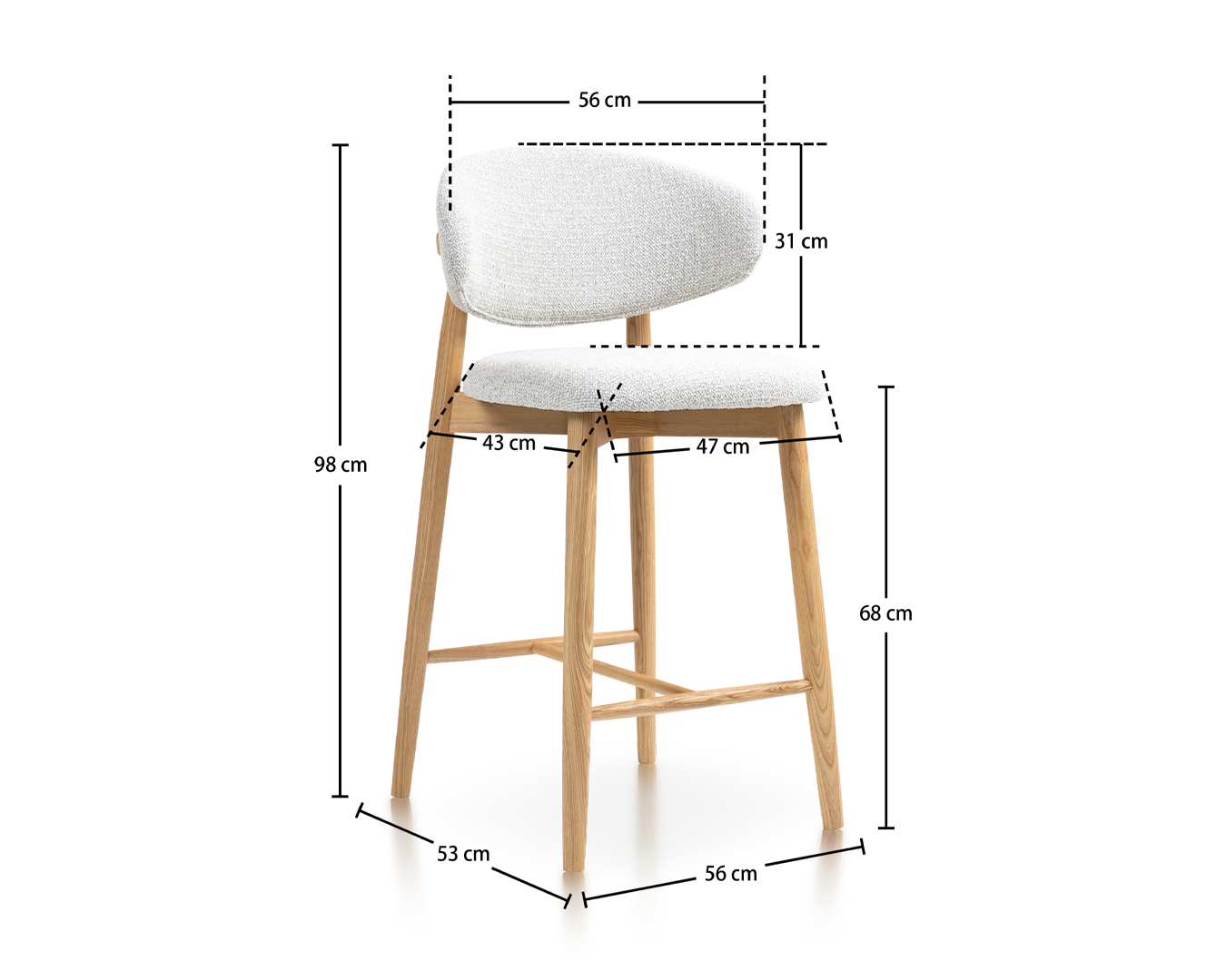 • Tillverkad från slitstark aska trä och utformad för att para perfekt med barräknare eller köksöar. Den robusta ramen och ergonomiska sätet säkerställer långvarigt stöd, medan den eleganta designen gör dem en bra passform för samtida eller rustika interiörer.
